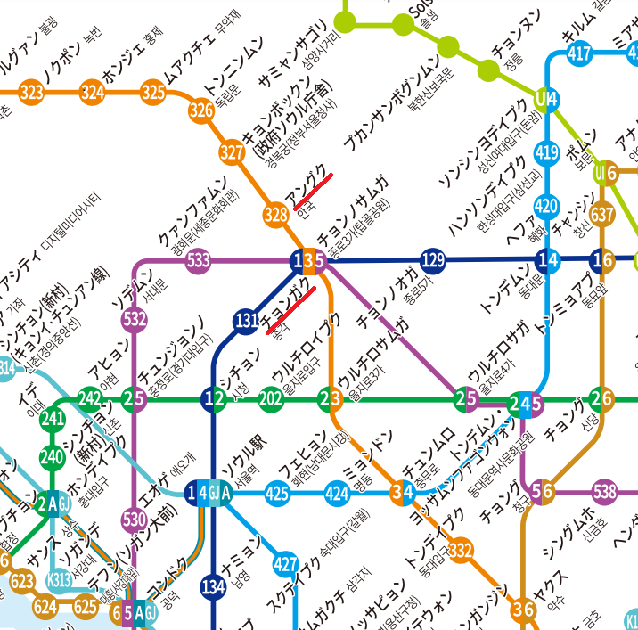 - 地下鉄1号線・鐘閣(チョンガク/종각)駅 ➡ 仁寺洞の南側入口の最寄り駅