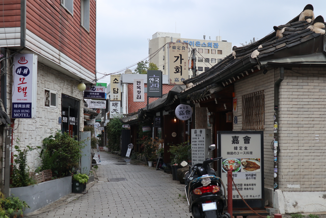 近年、仁寺洞一帯には、古くからの韓屋を使って伝統茶店や飲食店がオープンする一方、新しい現代風の複層建物も建てられて、外国観光客も訪れるソウルの代表的な観光エリアになっています。