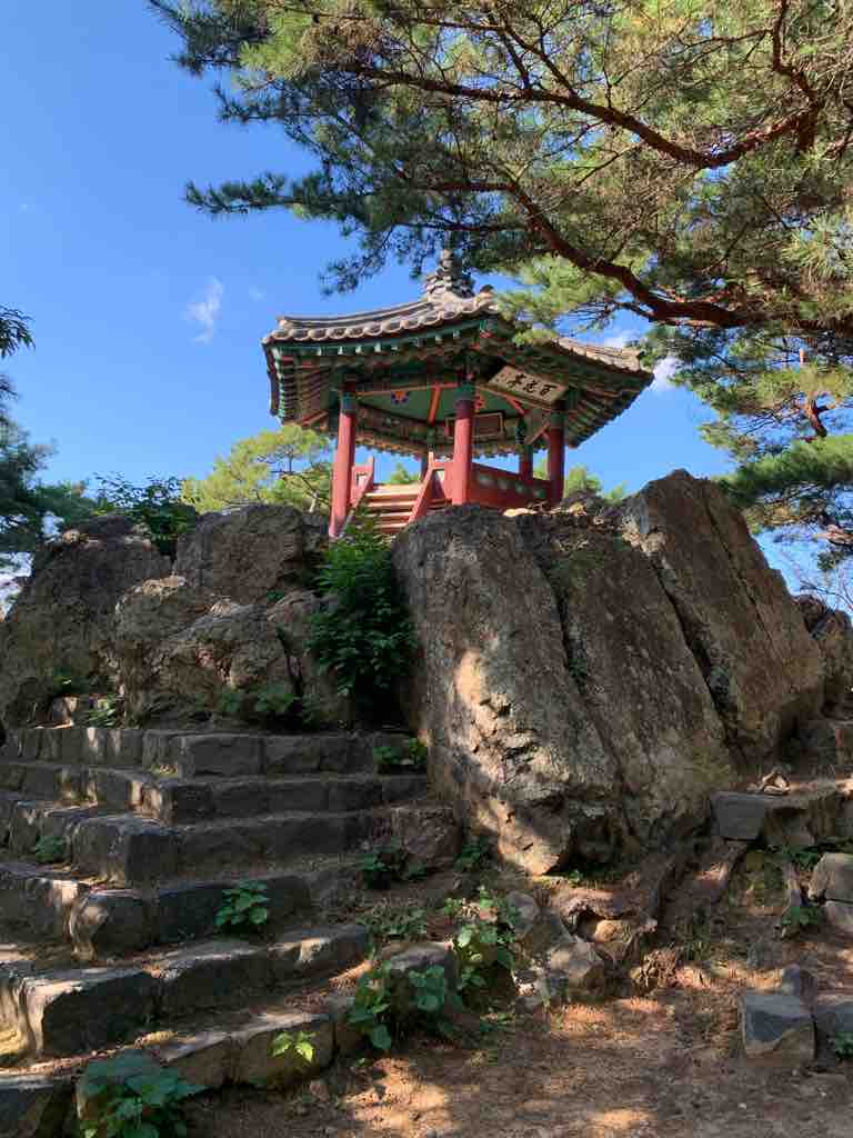 扶余は、三方が川に囲まれているため外敵からの防御に適しており、その中心部には、かつて「泗沘城」があり、その城の背後に川岸に面して扶蘇山城(プソサンソン/부소산성)があったと言います。この扶蘇山は海抜94メートルの丘陵であって、現在は登山をしながら、山中に点在する施設や城跡などを見学することができます。さらに扶余の都には、かつて都の外郭を取り囲むように「羅城」と言われる城壁で守られていました。現在、その一部の区間が復元されています。