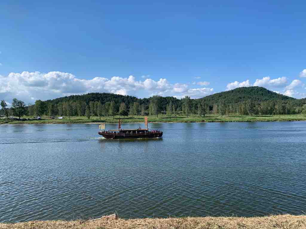 扶余の周りには、英語の「C」のような形に北東から南へと、ゆったりと大きな川が流れています。この川は、白馬江(ペンマガン/백마강、=錦江)と言います。現在は、遊覧船が出ており、川から陸地を眺める景色を楽しむことができます。白馬江は百済とともにあった川。遷都前の熊津の都も、この川の上流にありました。さらに、この川のさらに下流で白村江の戦いが行われたと推定されています。